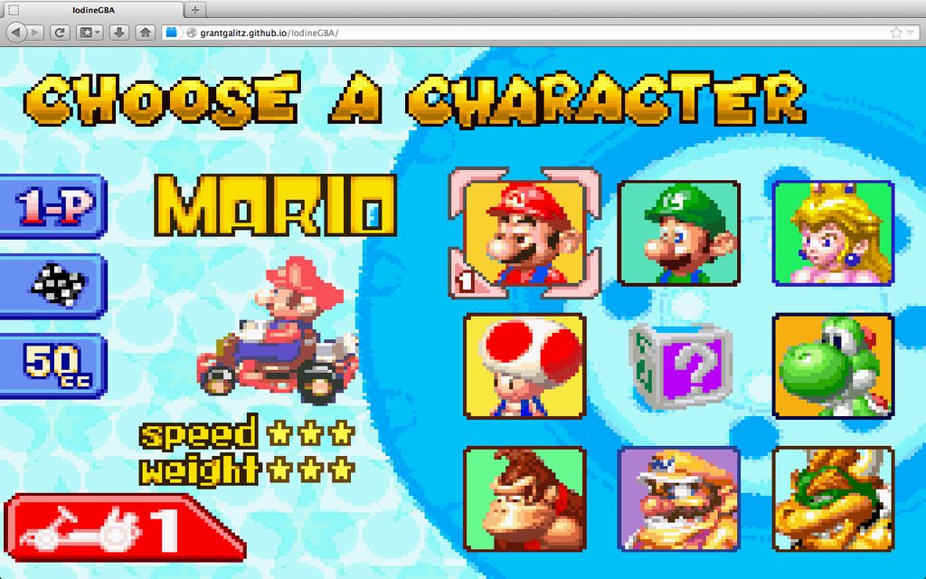 A GameBoy Advance emulator that utilizes HTML5 canvas and JavaScript audio APIs to provide a full emulation of the console.