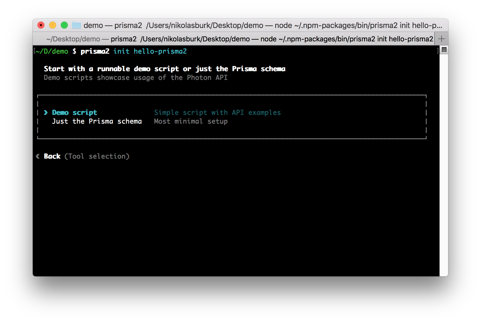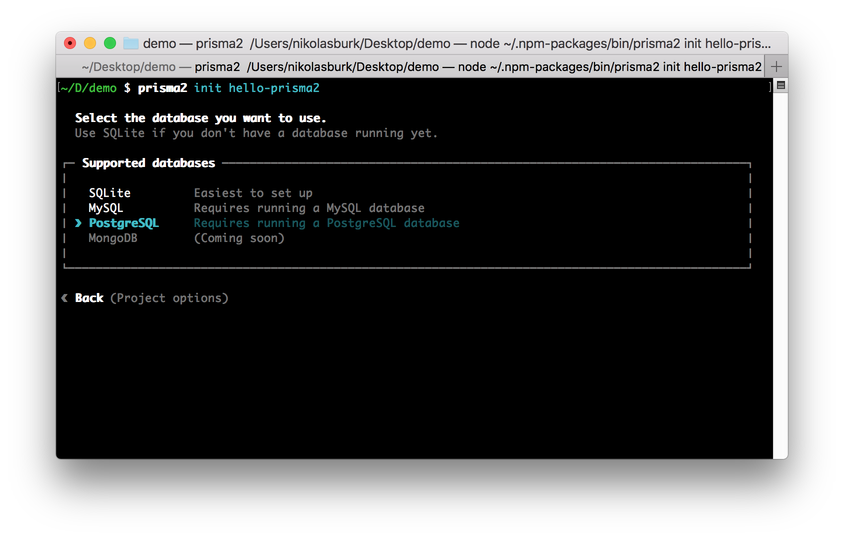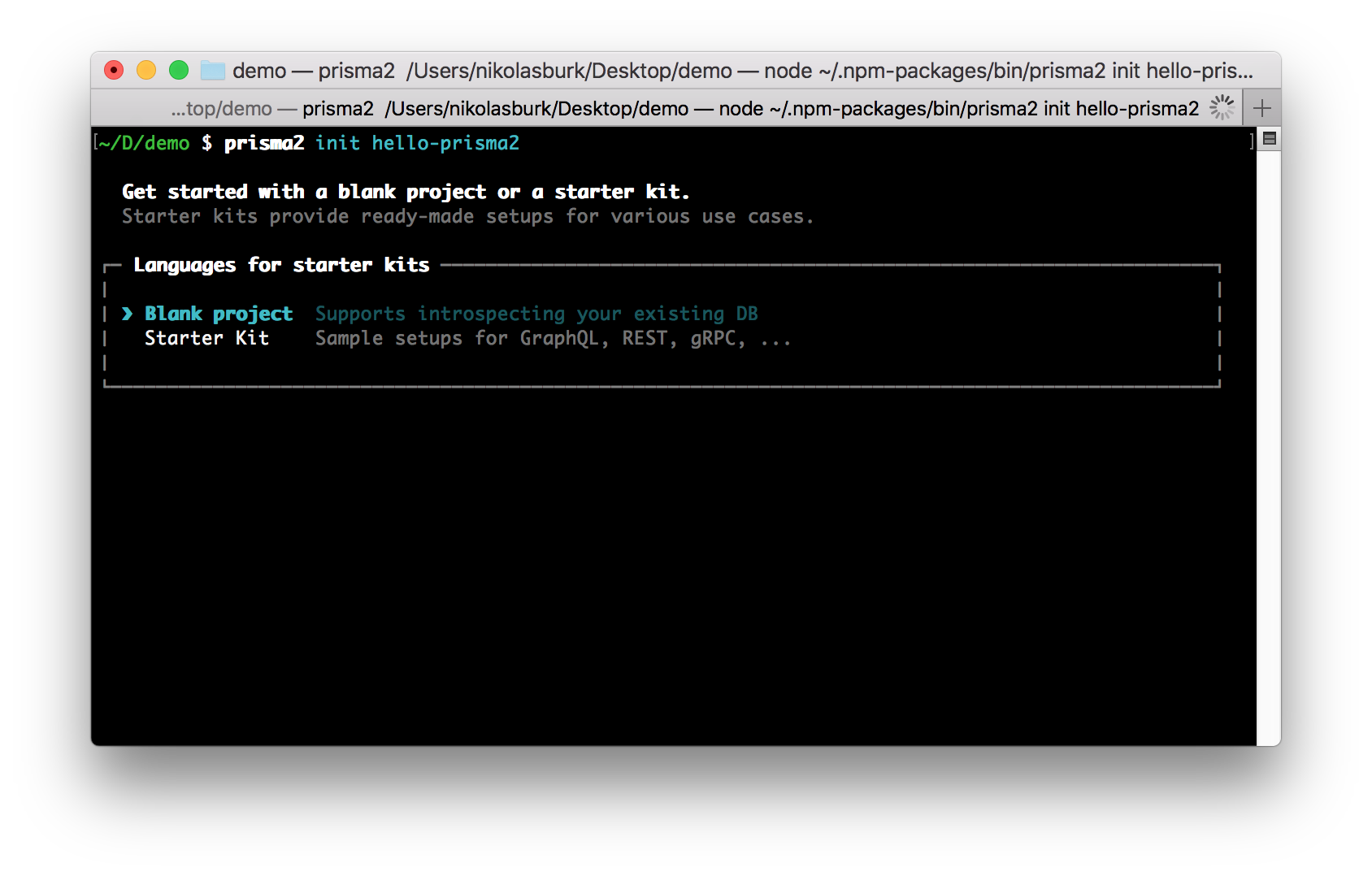 prisma2 init hello-prisma2
