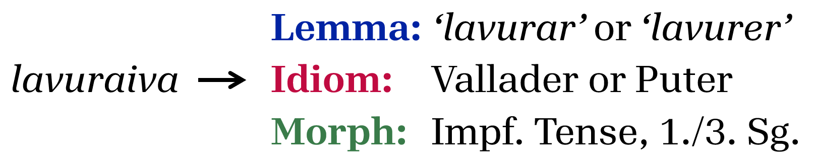For example, if a Romansh text contains the word lavuraiva, the lemmatizer traces the word back to the Vallader and Puter dictionaries: