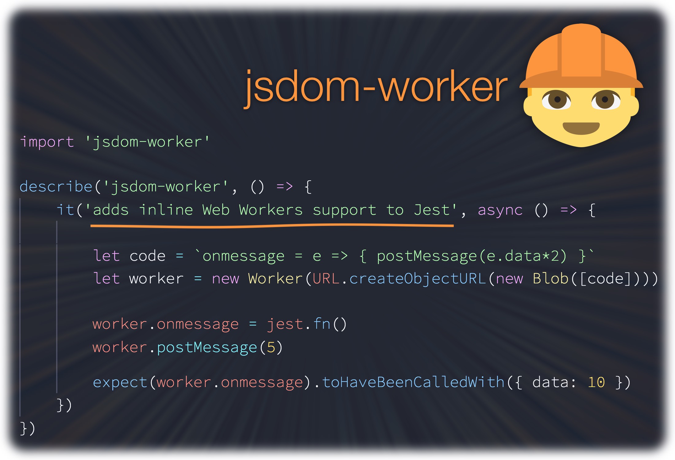 πŸ‘·β€β™€οΈ Use Web Workers in Jest / JSDOM 🌈