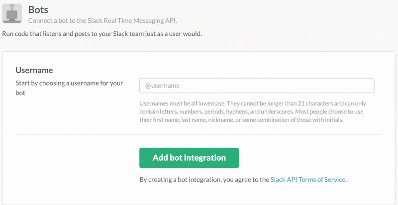 You can now execute terminal commands (each slack user is a separate linux user) by either sending a direct message to the bot or mentioning it in a channel where it is present.
