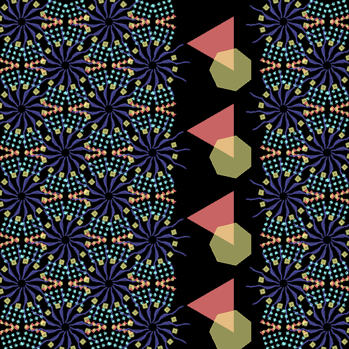 A Clojure library for generating patterns, both at the small scale and the "layout" of smaller units. Units can be recursively nested. It was originally written to work with Quil, the Clojure wrapper around Processing, but has now been broken into several separate projects.