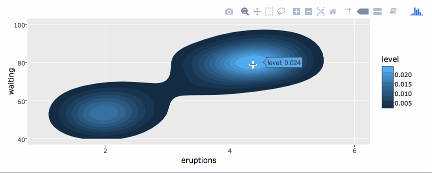 g <- ggplot(faithful, aes(x = eruptions, y = waiting)) +