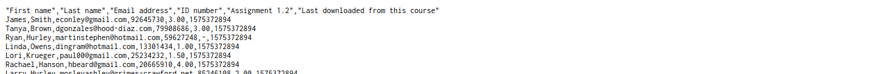 - export the grade table from Moodle as a “text file”, i.e. in CSV format